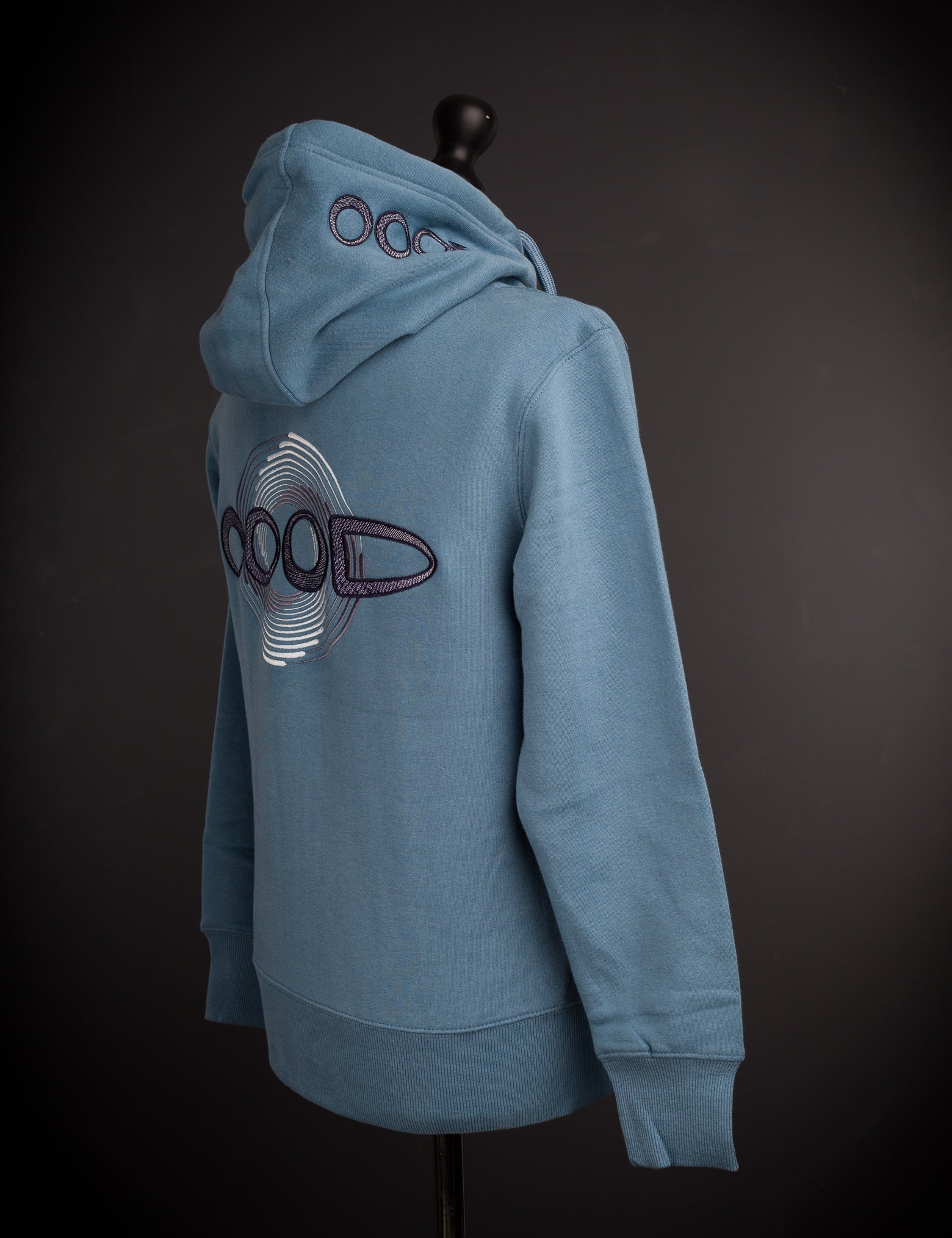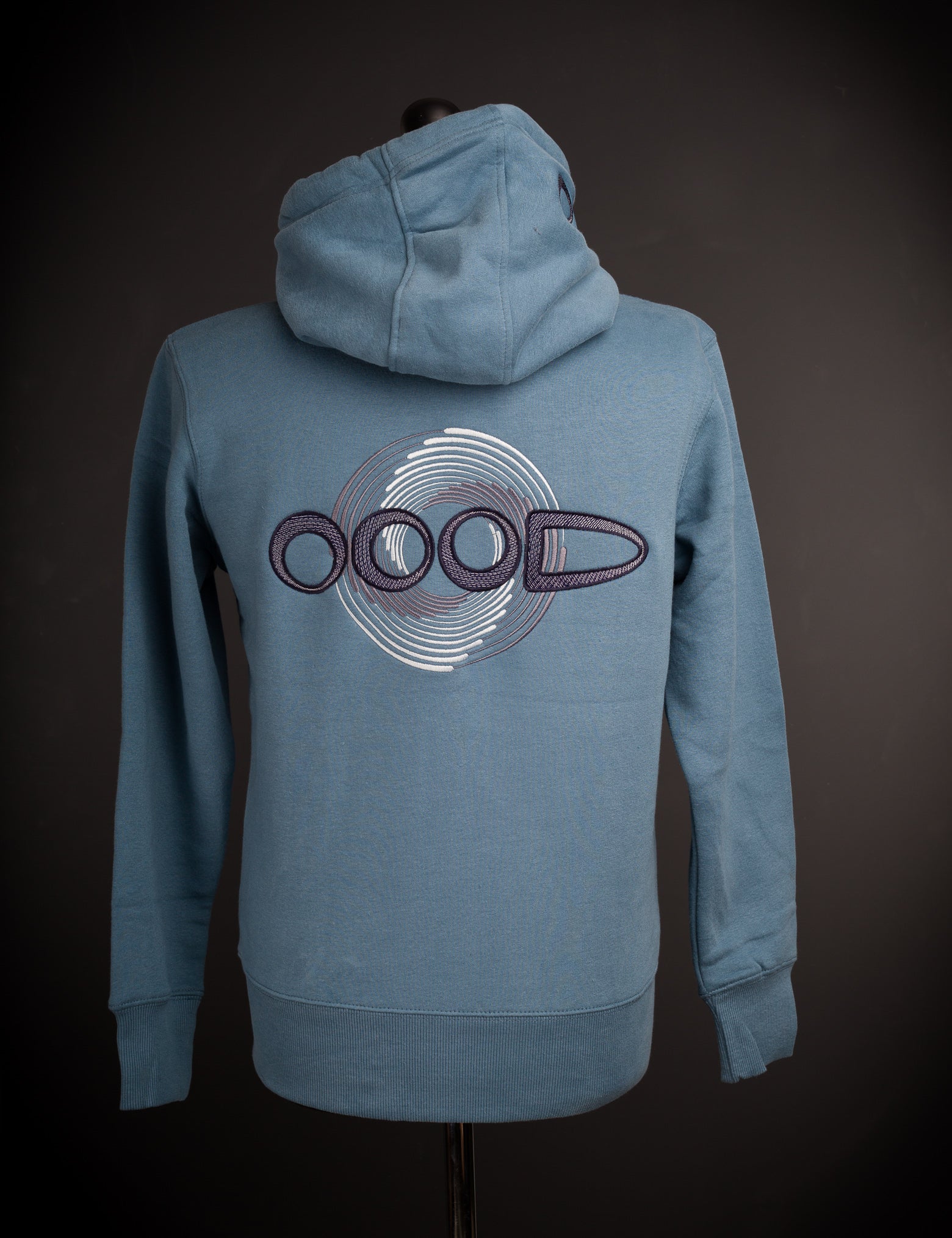 Super high quality embroidered monochrome design on hoodie back, with embroidered OOOD logo on hood and chest.