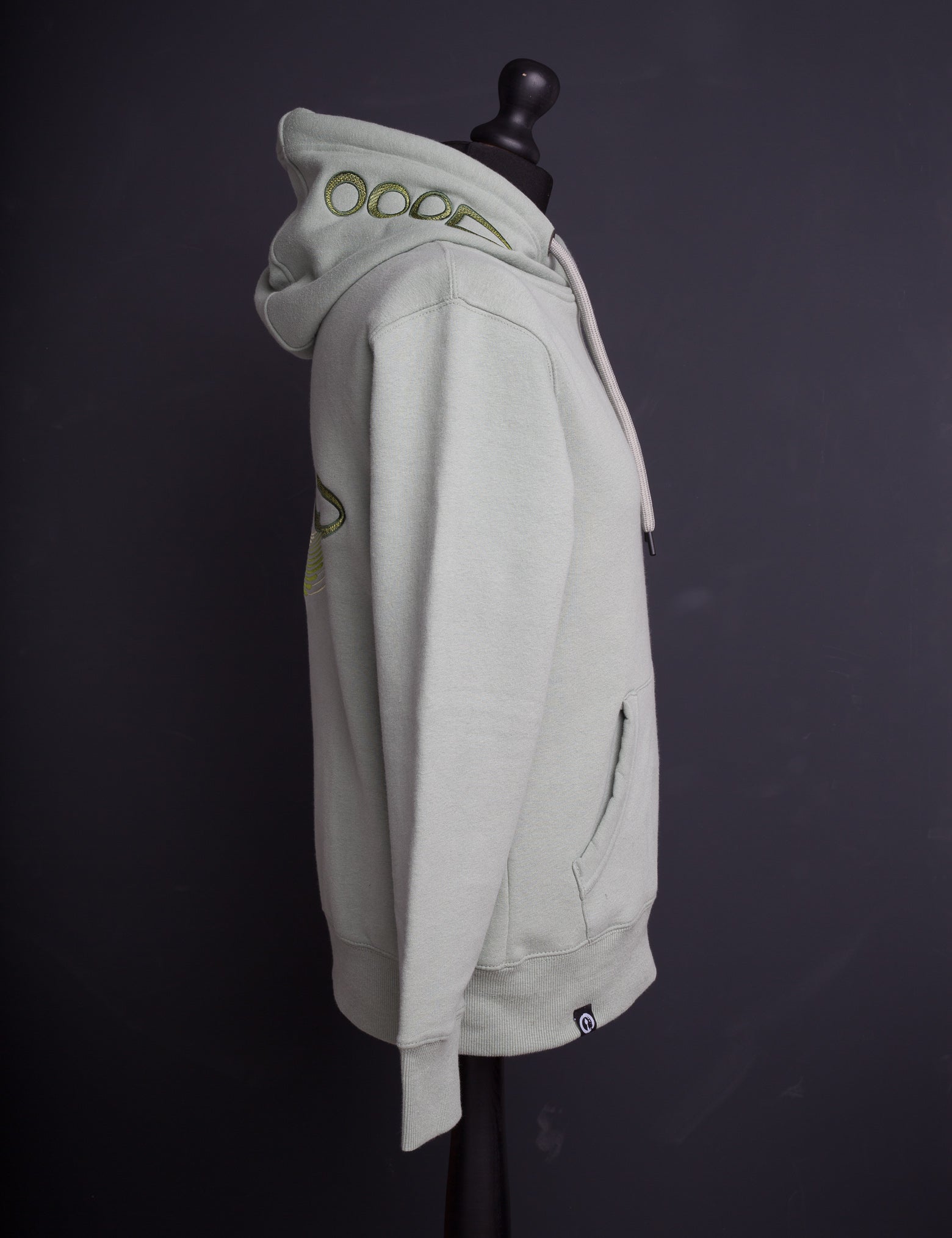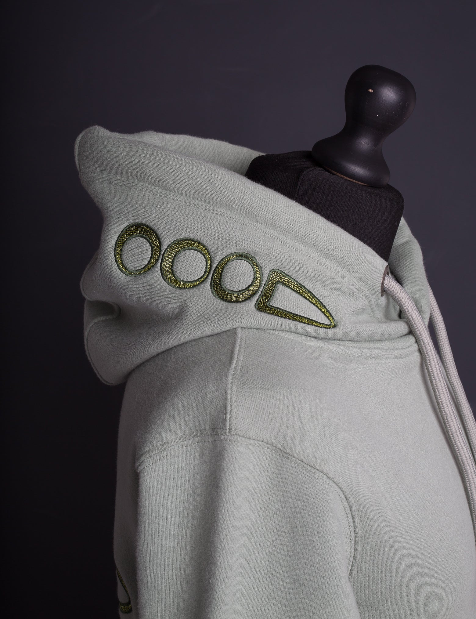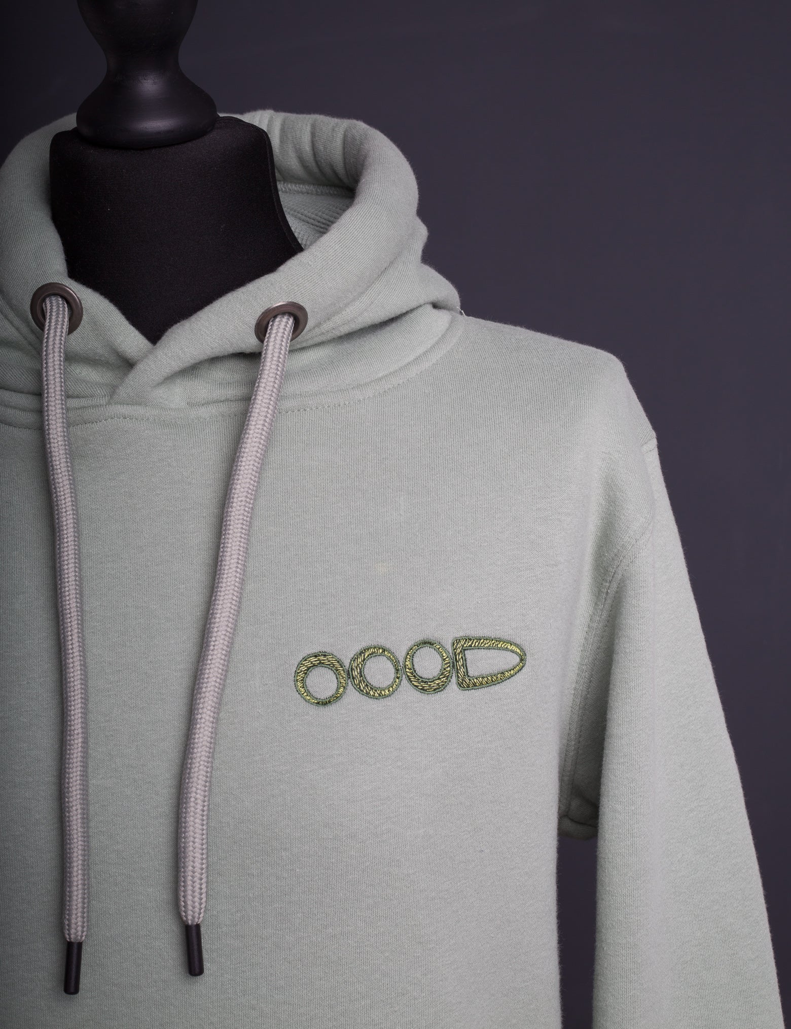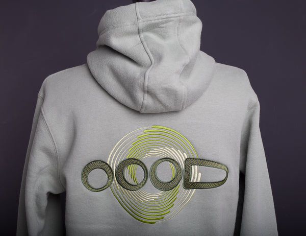 Super high quality embroidered monochrome design on hoodie back, with embroidered OOOD logo on hood and chest.